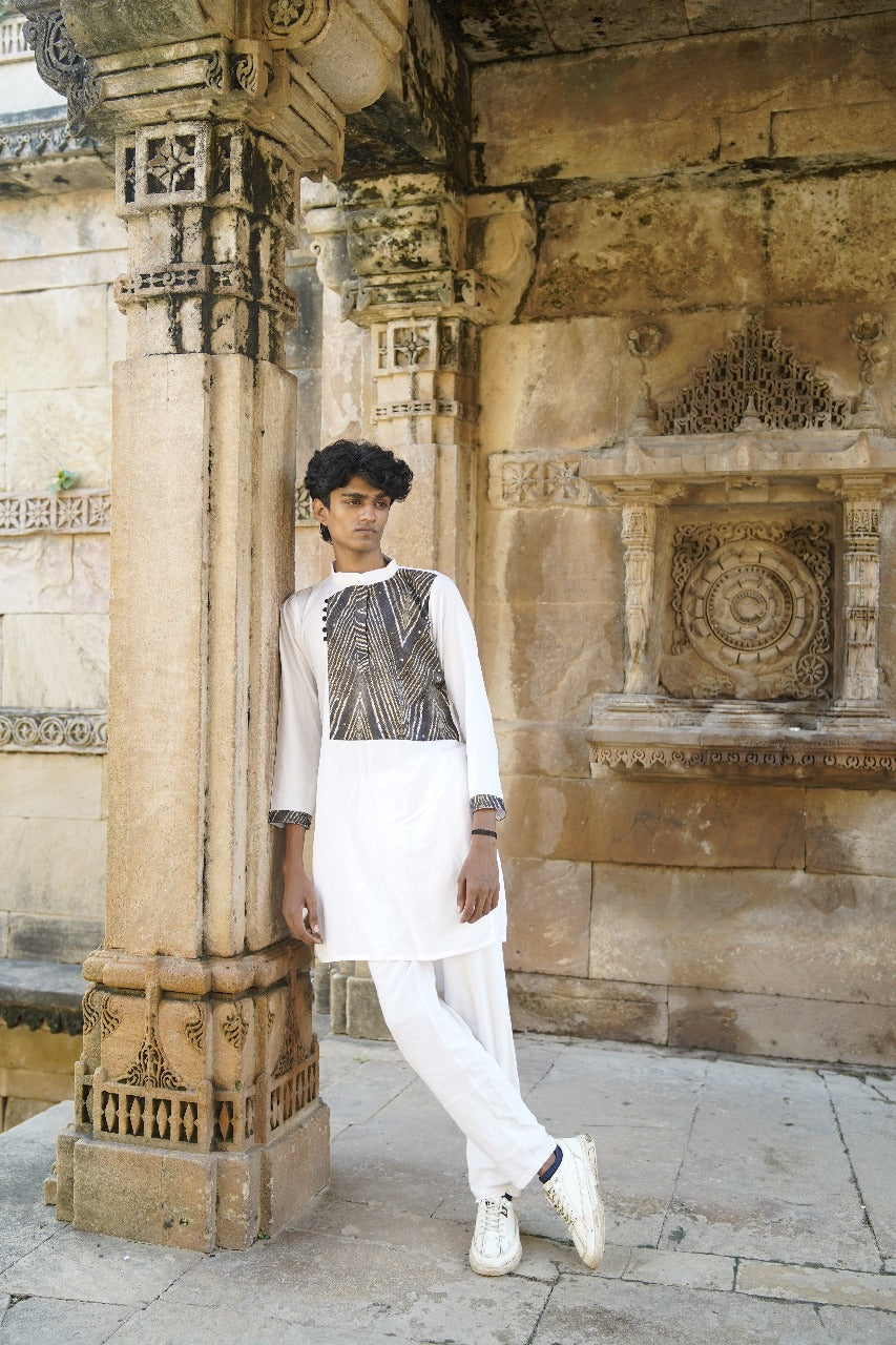 Geometric Threadwork – Features intricate motifs created with precise thread detailing, adding depth and character.